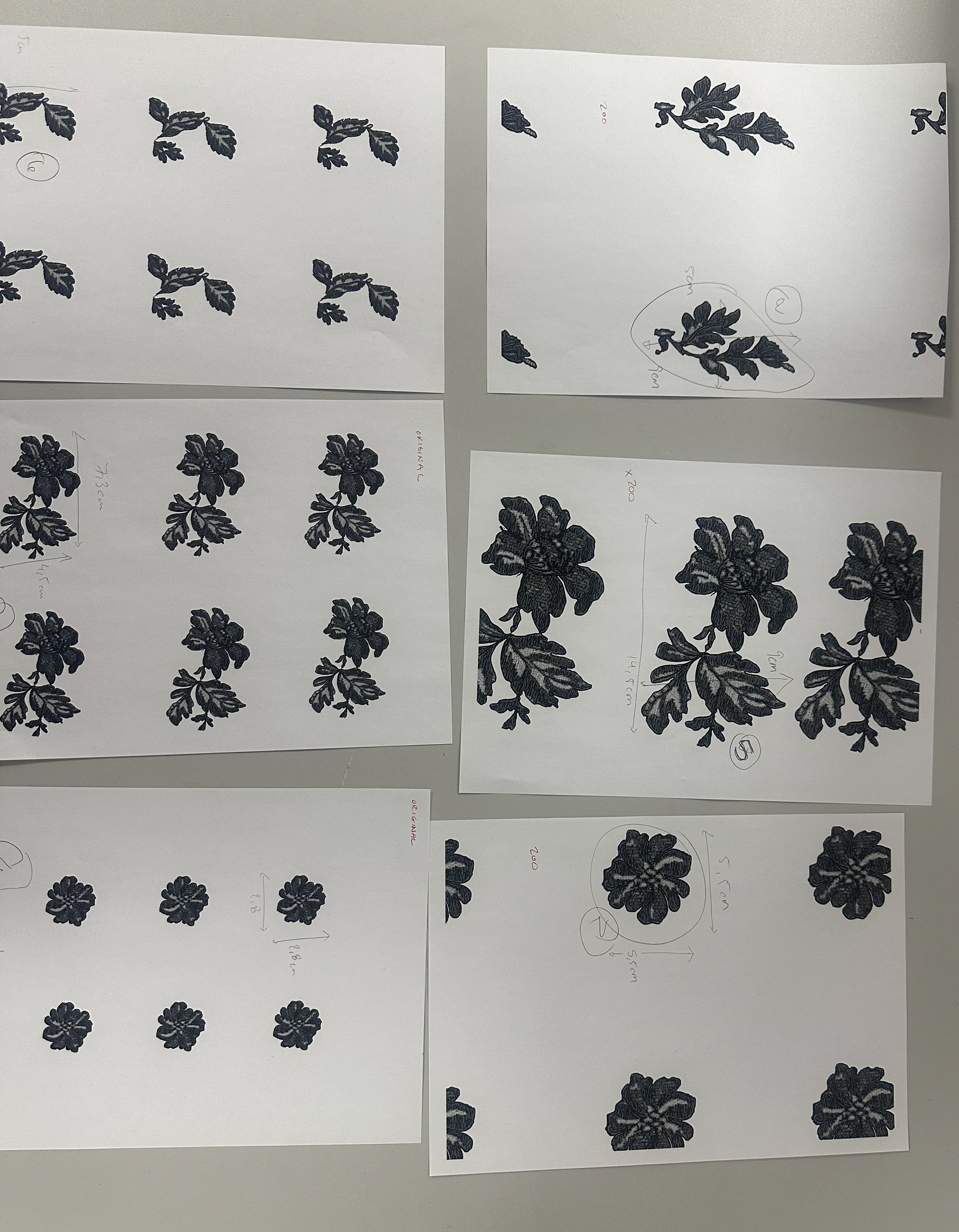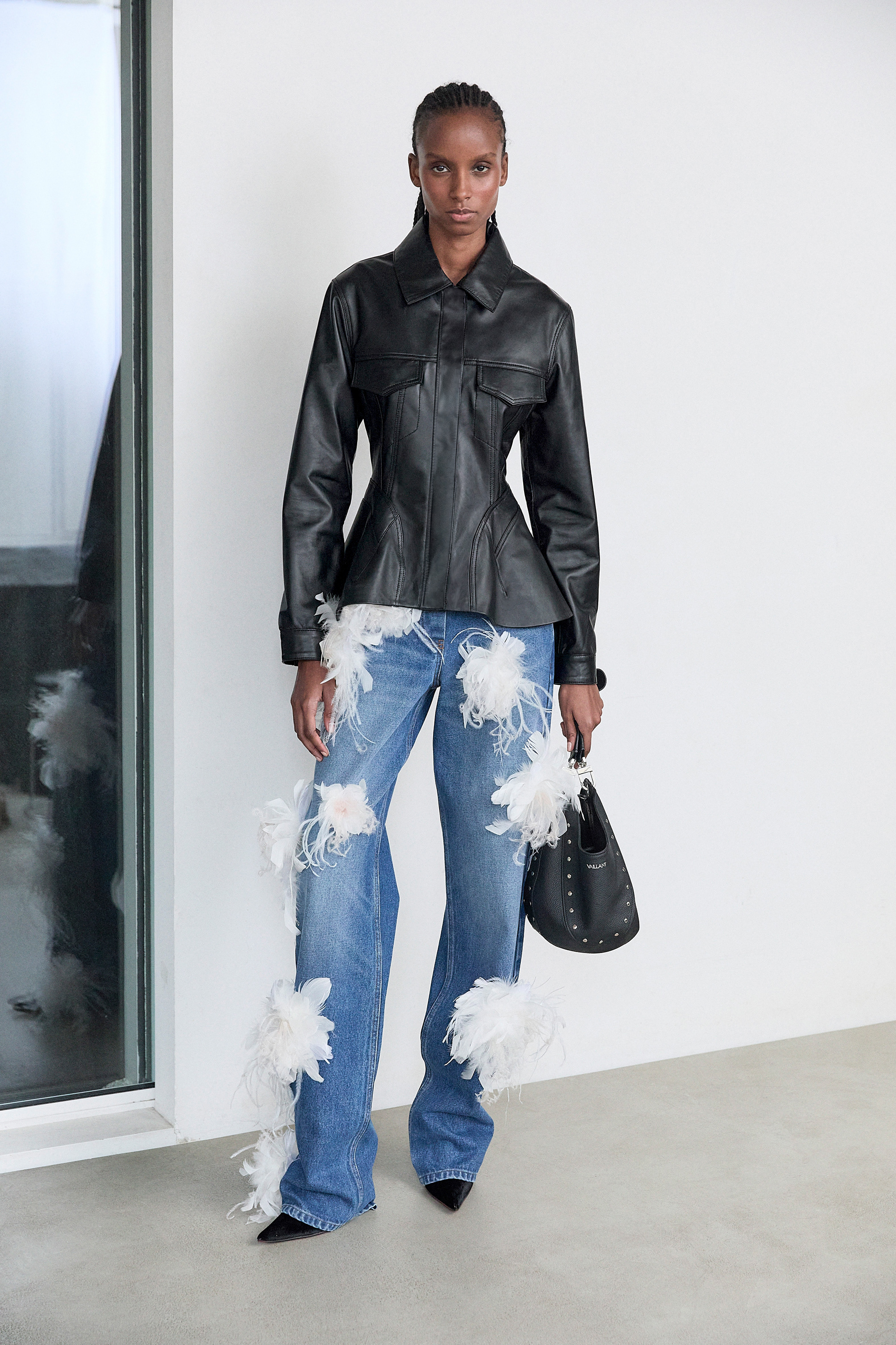 This project began with a repeat pattern for an embroidered feather dress, originally featuring 3D feather flowers and ribbon on lace. As the concept evolved, the design shifted to individually placed feathers on embroidered lace. The refined floral elements were later adapted across multiple pieces in the collection, including jeans, bags, and dresses.